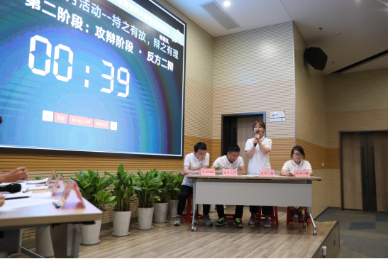 古有臥龍諸葛舌戰(zhàn)群儒, 今有群英薈萃慷慨陳詞。主持人簡短的開場之后,雙方辯手正式PK對決,雙方辯手各持觀點,針尖對麥芒, 雙方各展其長,在攻辯階段辯手們當仁不讓,妙語連珠,自由辯論階段,雙方辯手更是據(jù)理力爭,他們思路清晰, 引經(jīng)據(jù)典,才思敏捷,憑借縝密的邏輯思維,查找對手漏洞,將比賽推向另一個高潮。最后在總結(jié)陳詞階段,雙方四辯各自針對對手邏輯上的漏洞逐一回擊,為贏得最后比賽做最后的努力。