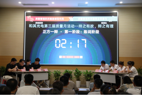 2021年7月22日下午5點,和其光電第三屆質(zhì)量月活動---辯論賽,冠軍爭奪賽在學術混沌廳如期舉辦。