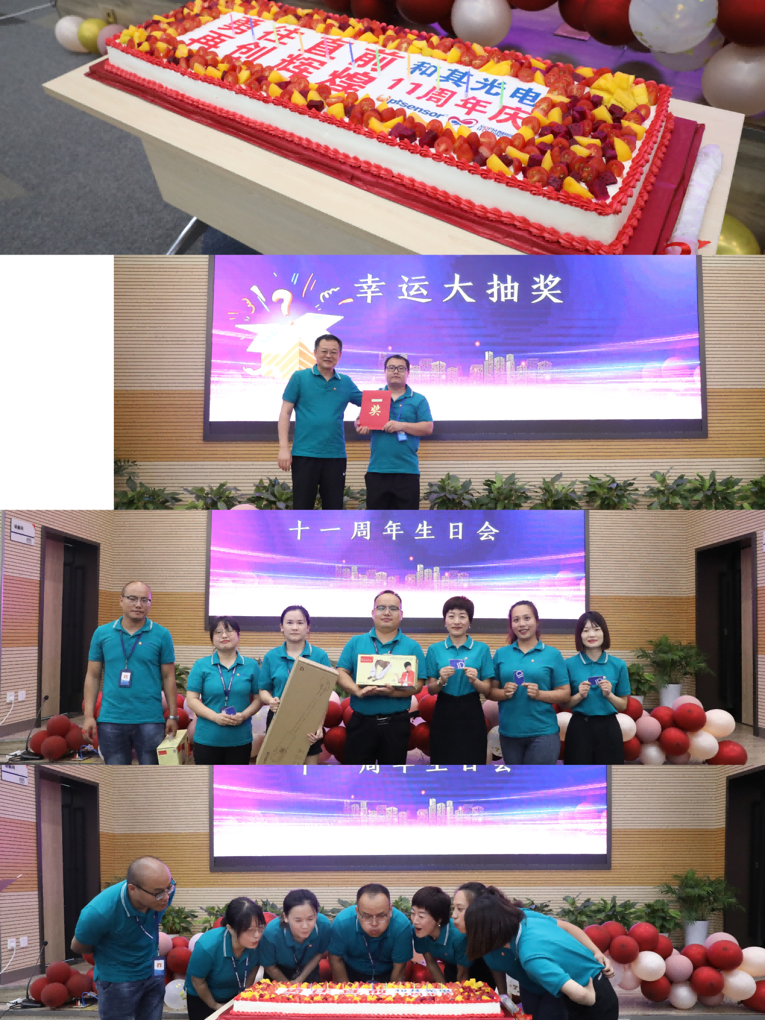會(huì)議第四項(xiàng),生日會(huì)及幸運(yùn)大抽獎(jiǎng)。隨著輕快愉悅的生日歌聲響起,全體伙伴共唱生日快樂歌,許下對(duì)公司的美好的祝福。公司八月份的壽星們一起切開甜蜜的蛋糕,與大伙分享甜蜜的喜悅。隨著首席科學(xué)家方博士一聲“?!钡目诹畎l(fā)出,本次幸運(yùn)大抽獎(jiǎng)的幸運(yùn)兒也隨之產(chǎn)生,在大家的祝福與掌聲中,生日會(huì)完美落幕。