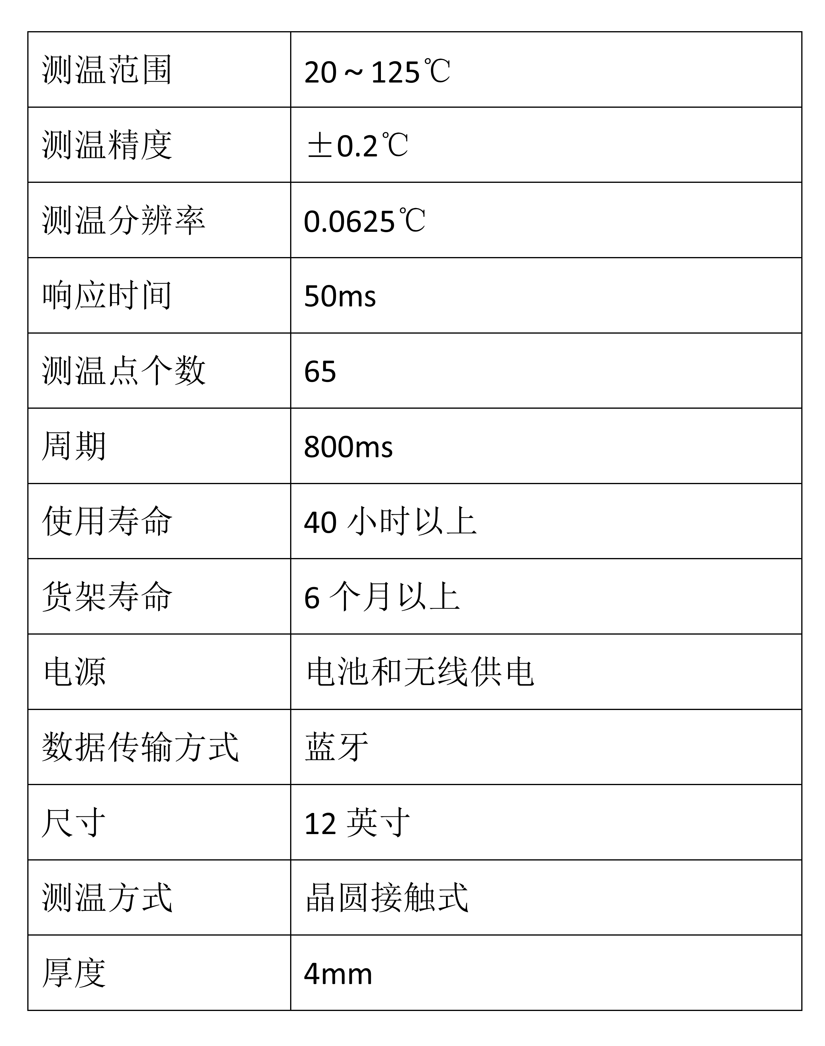 IC Wafer晶圓采用無線、薄型設(shè)計,可以在所有光刻工藝設(shè)備中使用,可為關(guān)鍵生產(chǎn)工藝提供高精度的靜態(tài)和動態(tài)溫度測量。使用65個傳感器來幫助光刻 工程師表征熱均勻性并分析熱循環(huán)的各個部分,包括傳輸、加熱、冷卻和穩(wěn)定狀態(tài)。內(nèi)置的天線及無線充電電池在放入配套工作站后自動傳輸數(shù)據(jù)并充電,在上位機(jī)通過IC thermometer軟件進(jìn)行參數(shù)配置。