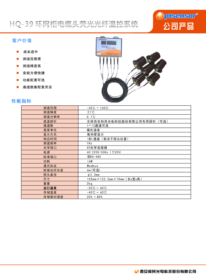 環(huán)網(wǎng)柜電纜接頭熒光光纖溫控系統(tǒng)